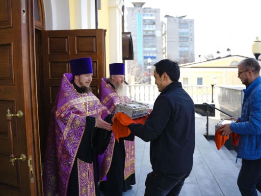 Симбирская епархия сообщает, что 17 марта в Спасо-Вознесенском соборе Ульяновска состоялась встреча святынь: двух башмачков святителя Спиридона Тримифунтского.
