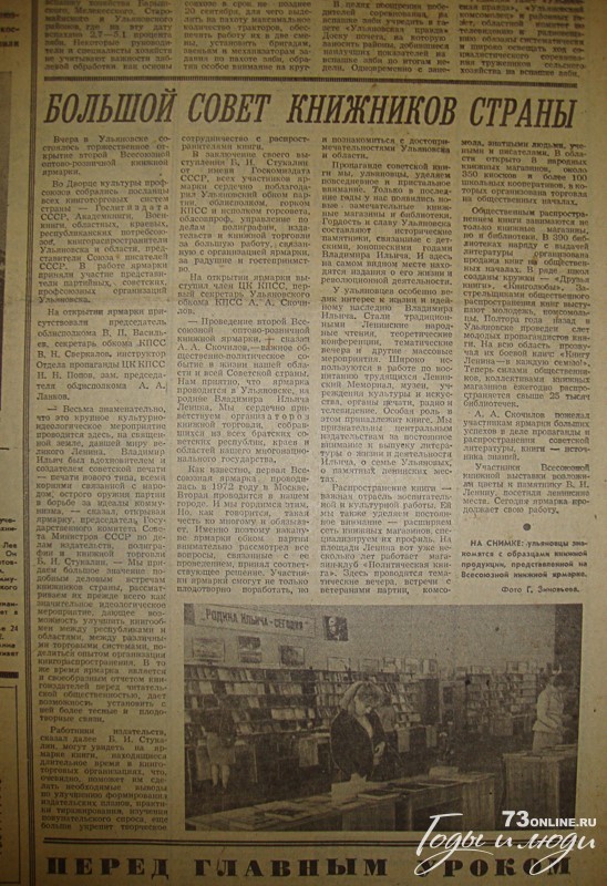 Во Дворце культуры профсоюзов собрались посланцы всех книготорговых систем страны – Гослитиздата СССР, Академкниги, Военкниги, областных, краевых, республиканских потребсоюзов, книгораспространители Ульяновска и области, представители Союза писателей СССР (...)