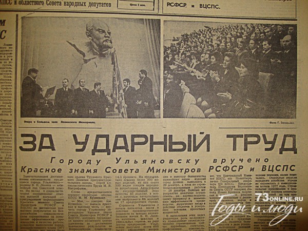 Городу Ульяновску вручено Красное Знамя Совета Министров РСФСР и ВЦСПС