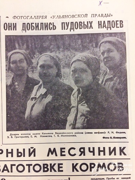 З.В. Григорьева, доярка колхоза имени Калинина Вешкаймского района.