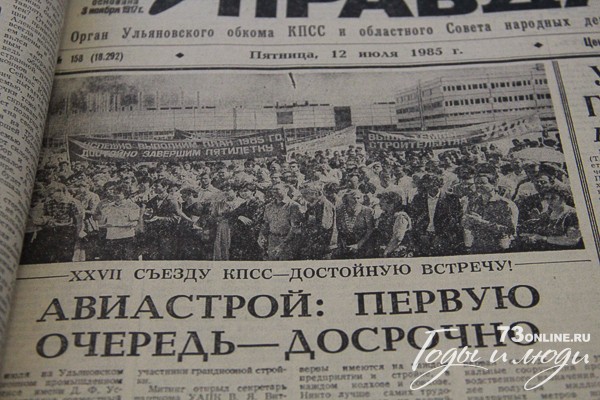 10 июля на Ульяновском авиационном промышленном комплексе им. Д.Ф. Устинова состоялся митинг с призывами: «Решение Пленума ЦК – в жизнь!», «Выше темпы строительства УАПК!»