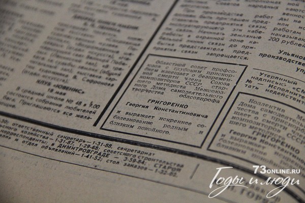 16 мая 1986 г. Скончался Георгий Константинович Григоренко, член Союза композиторов СССР, старший методист Межсоюзного Дома самодеятельного творчества облсовпрофа.
