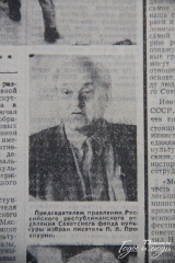 (…) На учредительной конференции было создано Российское республиканское отделение, избрано его правление во главе с председателем – писателем, секретарем правления Союзов писателей СССР и РСФСР, лауреатом Государственных премий СССР и РСФСР П.Л. Проскуриным.