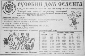 Наконец, к собравшимся вышел заместитель губернатора В. Гуринович, который уже дважды до этого встречался с представителями инициативной группы. Однако встречи эти ограничивались разговорами вокруг да около. Сейчас обманутые вкладчики обвиняли Гуриновича в том, что вопрос об аресте счета и имущества «РН» не был решен месяц назад. Они высказывали опасение, что прогоревшие финансисты могут продать все, что у них есть, и улизнуть, оставив их ни с чем (…)