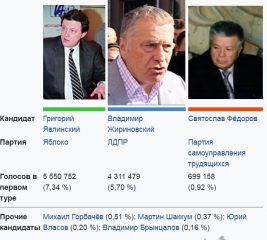 По данным Центризбиркома, на 18 часов вечера 17 июня подведены следующие итоги голосования по России (подсчитано 98 процентов бюллетеней):
