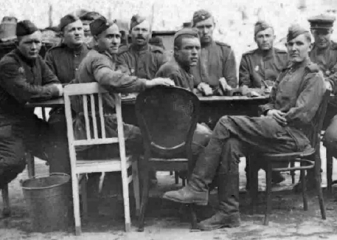 Боевые сто грамм мы до боя не пили – разве только после. А когда был бой за Зееловские высоты, кухня вообще отстала (только уже после боя подвезли обед). Тогда, как известно, сражение началось ночью при свете прожекторов. Нам было видно гораздо лучше: прожектора светили в спину и освещали немецкие позиции, но всё равно всё перепуталось: и немцы, и наши…