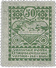 Также он попал на одну из трех марок, которые выпускались "Воинской почтой Ческословенского войска на Руси" — теперь это филателистическая редкость, которая стоит баснословных денег: