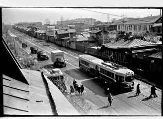 «Перекресток улиц Минаева-12 Сентября. На углу было двухэтажное здание. Вдалеке – портовские дома – для строителей Речного порта, еще дальше были построены Дом пионеров, Детская библиотека. Вся улица, которая на фото, была снесена. Мне поручили снять фильм «Ульяновск сегодня». Председатель горисполкома Крюков говорит – так сними, чтобы город выглядел похуже: улочки в плохом состоянии, еще что-то…Мы этот фильм, говорит, пошлем в Совет министров, чтобы нам отпустили побольше средств на реконструкцию города. Я так буквально и понял задачу. Отснял, сделал первый вариант немого фильма – без дикторского текста. Показал, они посмотрели и говорят: «Борис Григорьевич, да нам не деньги выделять, а наказывать надо за то, что мы допустили такое в Ульяновске! Давай чем-нибудь разбавь!». А чем я разбавлю? В итоге макеты проектного института в Ленинграде, который проектировал строительство Ульяновска, добавили в этот фильм. Так я сделал фильм «Ульяновск вчера, сегодня, завтра». Этот фильм прошел и у нас по телевидению, и в центр послали. И вот во время съемок этого фильма эти кадры и сделаны.
