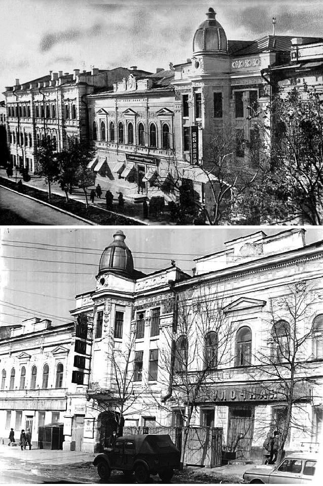 А в 1912 году купец Н.С. Зеленков построил на Гончаровской монументальное здание, где помещался, пожалуй, самый большой на тот момент в городе электротеатр «Ампир» больше известный нам, как «Художественный». А зрителей в них зазывали такие вот афиши: «С 26 декабря открыт новый первоклассный общедоступный кинотеатр «Калейдоскоп» в доме Д.С. Булычевой, рядом с главным входом в номера Троицкой гостиницы.
