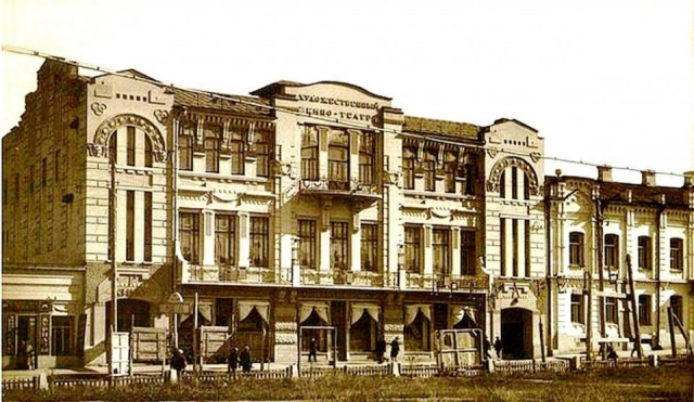 Спустя год - 8 февраля 1908-го - крестьянин Д.Л. Байков снял в аренду за 325 рублей в месяц городское здание на Б. Саратовской улице для кинематографа сроком с 1 марта по 1 ноября 1908 года. Это был к тому времени уже порядком обветшавший театр «Одеон», находившийся примерно там, где сейчас стоит гостиница «Волга».