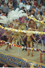 А вечером начался карнавал, потрясший жителей и гостей города своим великолепием и небывалым весельем. Ничего подобного Ульяновск никогда не видел на своих улицах: самые настоящие карнавальные автомобили, повидавшие известные карнавалы мира, медленно, сквозь огромную толпу народа продвигались по улице Гончарова, демонстрируя буйную фантазию конкурсантов. Перед жюри, которое возглавила популярная телеведущая Яна Чурикова, встала непростая задача: выбрать из двухсот экзотических костюмов самые-самые оригинальные. В итоге в финал вышли: "Карнавальная помойка" (ее автор Андрей Пономарев получил первый приз и отправился на отдых в Египет), "Избушка на курьих ножках", "Пиковая дама", "Цыпленок в яйце" и другие. Веселый праздник завершила группа "Блестящие".