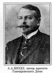 Для выбора лучшего проекта Гончаровского Дома решили организовать Всероссийский конкурс, первоначально через императорское общество архитекторов. Конкурсы проводились 26 июля и 15 декабря 1912 года. Было рассмотрено 16 проектов, но ни один из них архивная комиссия не утвердила и предложила разработать проект Гончаровского дома симбирскому архитектору А.А. Шодэ. В январе 1913 года Шодэ представил на рассмотрение комиссии свой проект, который и был одобрен.