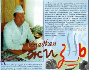 По-отцовски вышло: братья Анатолия Николаевича закончили медицинский, а он - сначала истгфак, а потом планово-экономический. Хозяйственником стал не сразу, но, видно, хозяйская жилка билась с рождения, потому и пошло запущенное кондитерское производство на лад с тех пор, как заступил А.Н. Ревенков на должность директора "Волжанки".