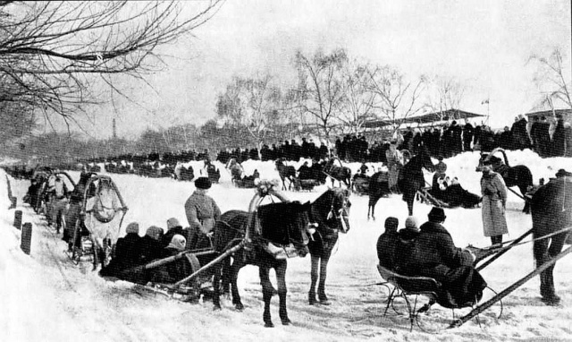 Зимой в Симбирске заливали катки. Один большой городской и множество мелких. Причем все они были бесплатными для всех. , А еще заливали горки на склонах оврагов, на которых катались не только дети, но и молодежь. Именно там женихи и невесты приглядывали друг друга.