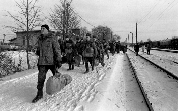 104-я дивизия ВДВ вернулась из Чеченской республики, встреча на железнодорожном вокзале в Чердаклах, Ульяновская область.