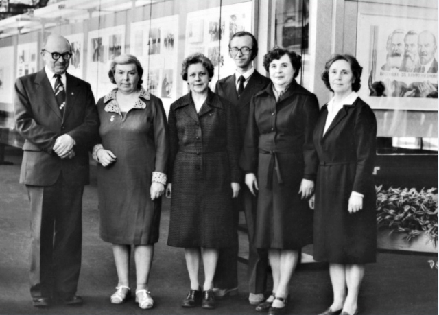 Сотрудники Ульяновского филиала Центрального музея В.И. Ленина, работавшие сразу после открытия музея. Слева направо: И.Я. Баранов – директор, Т.И. Аралина – старший научный сотрудник, А.Д. Дернова – старший научный сотрудник, В.И. Радаев – лектор, А.И. Томуль – заместитель директора по научной работе, Е.В. Нечаева – заведующая фондами музея. Ульяновск. 1970 г.
