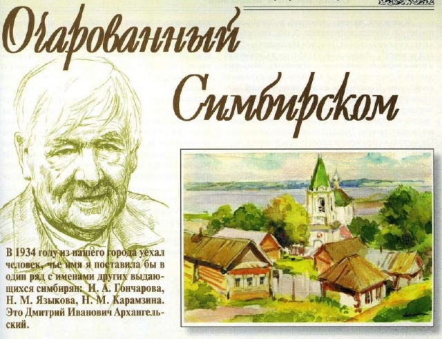 Самой активной формой использования фонда Д.И. Архангельского являются выставки, проводимые в музее и за его пределами. Первая большая выставка «Очарованный симбирским краем» была открыта к 350-летию Симбирска. С тех пор их состоялось около 30. Назову лишь некоторые из них: