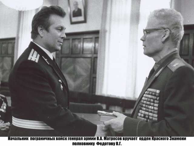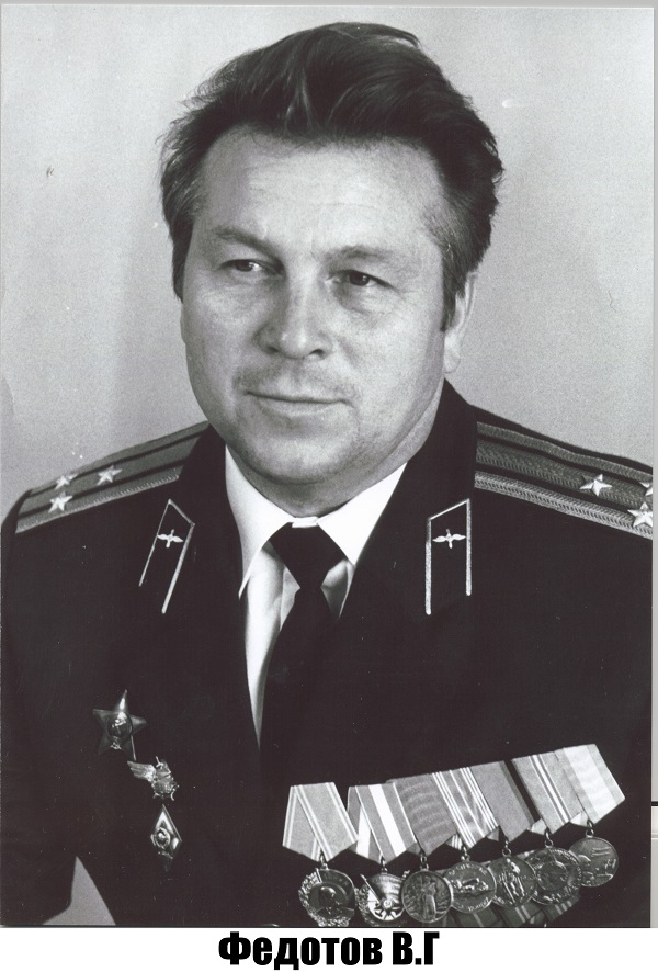 Полковник Валерий Георгиевич Федотов прошёл путь от лётчика-штурмана до заместителя командующего войсками Среднеазиатского пограничного округа по авиации. Во время выполнения интернационального долга в Афганистане с 1986 по 1989 год он командовал 17-м отдельным авиационным полком. Лично участвовал в боевых действиях в Афганистане. За мужество и отвагу, а также принятие грамотных решений по выполнению ответственных заданий по уничтожению группировок афганских моджахедов награждён орденами «Красного Знамени», «Красной Звезды», орденом Ленина, «За службу Родине» III степени и многими медалями.