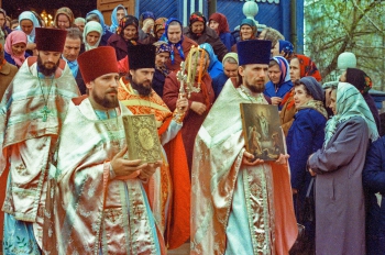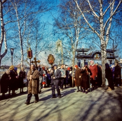 "Неопалимовский кафедральный собор, празднование Пасхи, на второй день. Крестный ход, молодёжи почти нет. На кадре со священниками, в центре в красном - отец Никон, старший священник по Ульяновской области. В данное время митрополит Уфимский и Стерлитамакский - Васюков Николай Николаевич", - рассказал автор снимков фотограф Владимир Ламзин