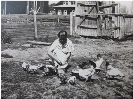Двор. Кормление кур. Левее колодец. 1939 г.