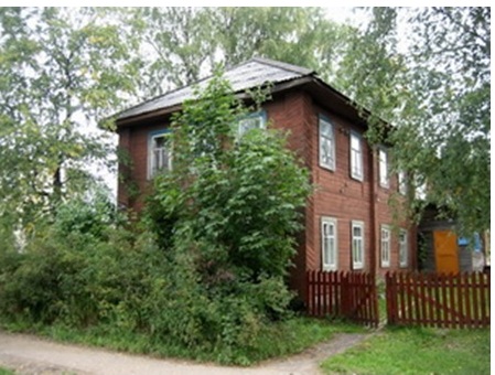Поселились мы в двухэтажном деревянном четырёх квартирном доме на улице Советская-13. В этом доме мы прожили 10 лет. Фото 2009 г. Кроме нас, там жили Обуховы, Бабарыкины и Останины. Все они были работниками предприятия, куда направили моего отца.