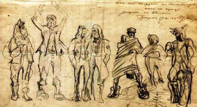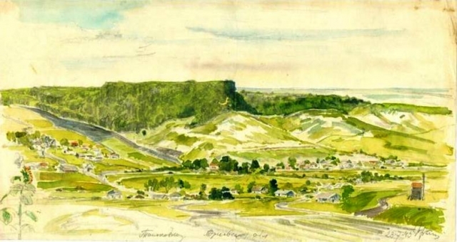 Тильковка Орловской области. 23 июля 1943 г. Фронтовой рисунок И.Н. Франго. ГАНИУО. Ф.230. Оп.1. Д.3. Л.1.