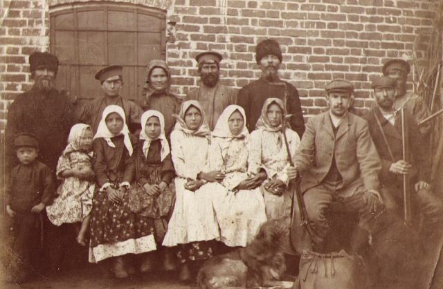 Группа крестьян Карсунского уезда. Трое мужчин в левой части снимка вооружены ружьями