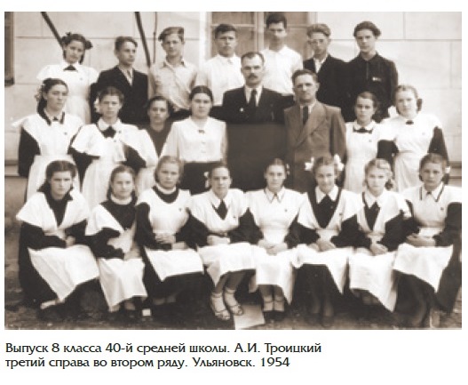 Александр Троицкий после окончания Куйбышевского пединститута (заочно) с 1939 года стал работать в Тагайской средней школе. Из Тагая он был мобилизован на фронт в 1942 году.