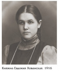 Племянник Ю.С. Хованского, тоже Юрий Сергеевич Хованский (1848– 1913), статский советник и кавалер. Служил чиновником особых поручений при cимбирском губернаторе, много лет занимал должности по дворянским выборам. В 1892 году стал председателем Симбирского отделения крестьянского поземельного банка, а с 1893 года управлял Симбирским отделением Государственного дворянского земельного банка. Был женат на Елизавете Леонтьевне Прушакевич, в семье было шестнадцать детей, до совершеннолетия дожили девять, среди них дочь Евдокия (домашнее прозвище Додя) Хованская (1895–1962). Это и есть наша героиня, будущая мать Серёжи Горбунова.