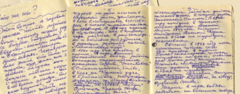 «Сегодня в жизни моей юбилей – исполнилось 65 лет первой записи в дневник. 1 февраля 1945 года появилась первая строчка в ученической тетради в линеечку. Шла Великая Отечественная война. Бумага была в большом дефиците. Особо ценными были тетради. В первый день учебы получил от учительницы Анастасии Михайловны Белозерской тетради: по письму (в линеечку), по арифметике (в клетку) и по чистописанию (в косую линеечку).