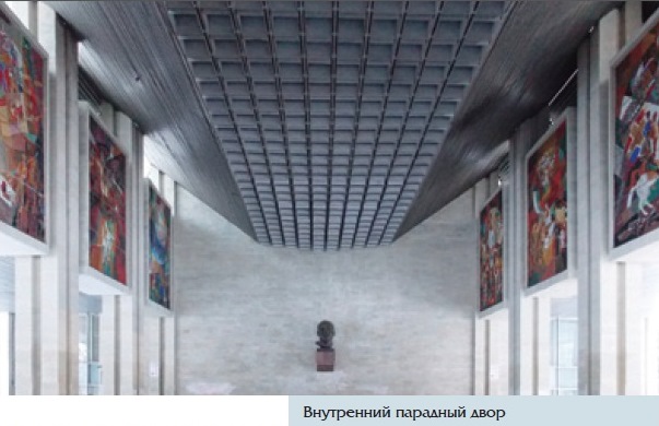 Художественное оформление внутреннего парадного двора, расположенного в межколонном пространстве со стороны главного фасада, было закончено в 1988 году, к открытию музея советско-болгарской дружбы. Главным украшением парадного двора стали восемь мозаичных панно с изображением значимых событий истории Советского Союза и Республики Болгарии.