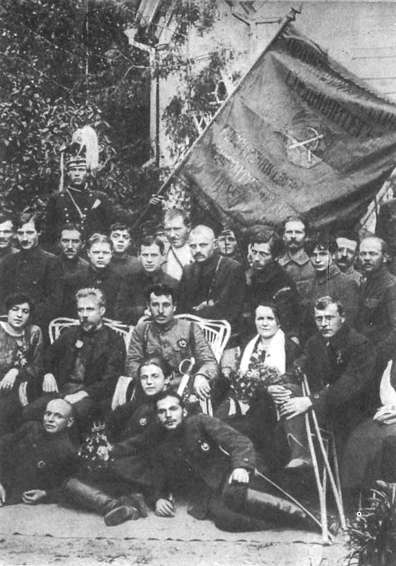 Штаб 24-й Железной дивизии с почётным Красным знаменем, станция Инза. В центре сидит Гай. Знаменосец – в форме Симбирского уланского полка, захваченной в Симбирске. Из книги: В.Г. Новохатко «Шесть дней июля: о Г.Д. Гае»