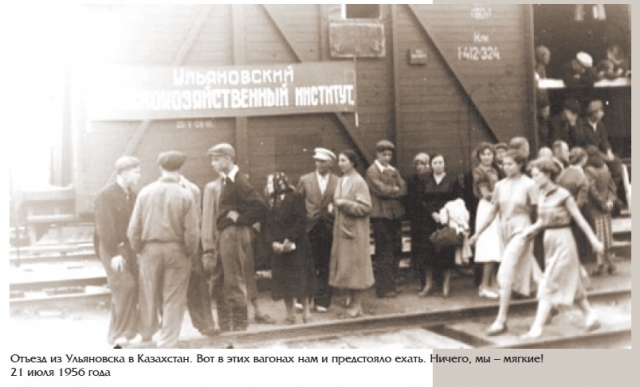 После третьего курса, летом 1958-го, нас снова, по тому же принципу, отправили на целину. Но здесь было уже лучше. Это – Западноказахстанская область, совхоз «Ульяновский», для нашей области – подшефный.