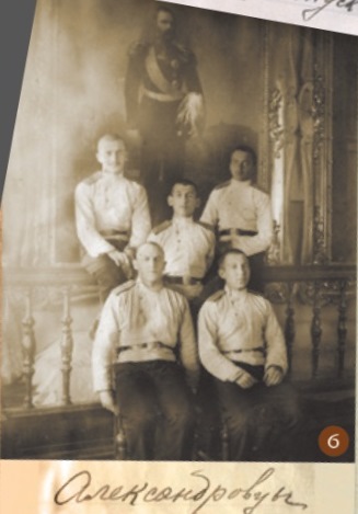 На фотографии 5 крайний справа – Павел Танфильев, младший сын Николая Ивановича Танфильева, генерал-майора Императорской армии (1850–1913). Дядя Павла, Гавриил Иванович Танфильев (1857–1928), был известным учёным, географом, почвоведом, профессором университетов в Санкт-Петербурге и Одессе. Именем Г.И. Танфильева назван остров и пролив в Курильской гряде. После окончания СКК в 1915 году Павел поступил в Морской корпус в Петрограде. По данным РГАВМФ Павел Николаевич Танфильев, старший гардемарин 2-й роты Морского корпуса в сентябре 1916 года заболел, отправлен в госпиталь, где скончался «от острого злокачественного малокровия». По желанию старшего брата, морского офицера, погребён на принадлежащем корпусу участке Смоленского кладбища. Мне удалось разыскать одного из потомков семьи Танфильевых, который живёт в Ульяновске.