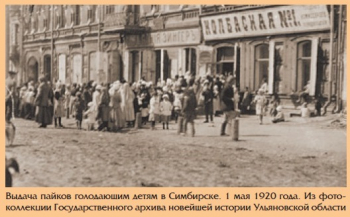 «В 1921 году в стране разразился голод. Особенно он свирепствовал в Поволжье. Была засуха. Детей тогда кормила Американская рабочая ассоциация АРА <…>. Я и моя сестричка получали целый год американское питание. Мы с ней были худенькими и бледненькими. Поэтому медицинская комиссия признала нас нуждающимися в этом питании. Мой братик Петя такого питания не получал, потому что был румяным и полненьким… Этого питания нам хватало на троих. В столовой выдавали на каждого ребенка по литру какао с молоком, по килограмму рисовой молочной каши и килограмму пшеничного хлеба из муки высшего сорта».