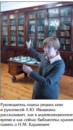 В мемориальной обстановке особенно ощущается духовная связь знаменитых симбирян во времени и пространстве. Наверняка, осознавая сопричастность и связанность с Карамзиным, почётный член Комитета Карамзинской библиотеки И.А. Гончаров передал в её фонды книги и журналы из своего собственного собрания.