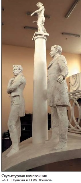 В аванзале третьего этажа установлена двухфигурная композиция из гипса «А.С. Пушкин и Н.М. Языков» (автор С.В. Бобраков). Пушкин и симбирянин Языков изображены стоящими рядом с колонной, увенчанной фигурой Музы поэзии. Изображение музы ассоциативно, на подсознательном уровне, намекает на Карамзина и региональную специфику. Тем не менее едва уловимая параллель между Музой поэзии и Музой истории на памятнике Карамзину указывает на скрытое присутствие иного смысла и иной траектории преемственности в восприятии истории.