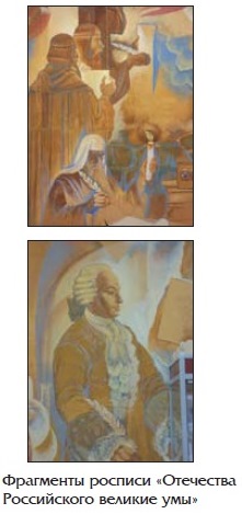 Первый этаж украсила монументально-декоративная роспись «Отечества Российского великие умы», выполненная ульяновским художником С.П. Горюновым. Она имеет форму триптиха. В левой части – древние летописцы и книжники, Пётр I. В правой части – учёные и космонавт. В центре картины – доминирующая фигура В.И. Ленина и красный флаг в окружении поэтов и писателей из установленного канонического списка.