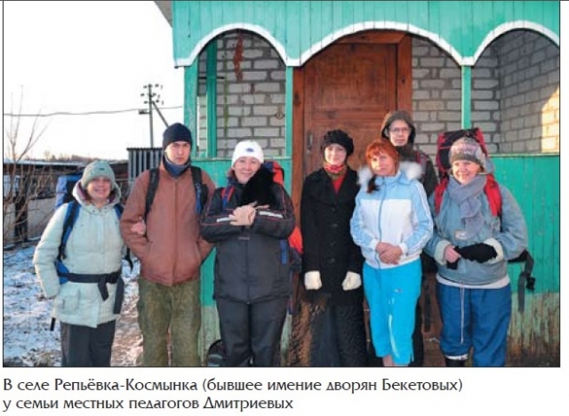 Репьёвка-Космынка – старинное село, прикрытое горами, расположено в овраге вдоль русла речки Космынка Оно известно как бывшее имение дворян Бекетовых, родственников Карамзиных. Место очень красивое. Там девять родников сливаются в одну речку. На самом мощном роднике поставлена купель. Сначала мы приняли баню (в селе нас гостеприимно встретили родители Александра, члена нашей группы), а потом решили окунуться в купель – получили неописуемое удовольствие. В Репьёвке-Космынке мы переночевали и утром двинулись в Знаменское.