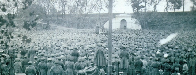 Керенский привествует строй военнослужащих в крепости Двинск летом 1917 года. Фото из альбома симбирского офицера-фронтовика