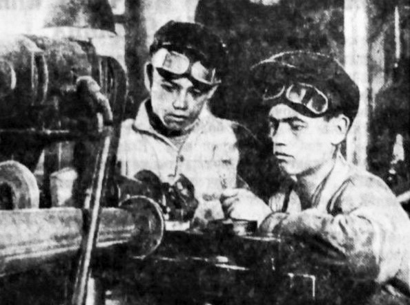 Комсомольцы-шлифовальщики братья Жидковы с завода имнени Володарского, 1943 год