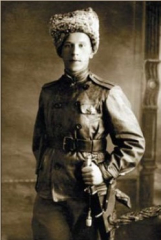«Под Курганом во встречном бою наш полк разбил 318-ю советскую дивизию (ошибка, очевидно, 318 полк. – О.Р.), забрав в плен около 600 человек, 5 орудий с полной упряжкой, полевой санитарный отряд с двумя докторами и 7-ю сёстрами милосердия. За этот бой (командир дивизии. – О.Р.) генерал Зощенко представил меня к Георгиевскому кресту, но получить его я не смог, так как началось полное отступление нашей армии. С 49-м Сибирским стрелковым полком я прошёл все бои, включая «Ледяной» Сибирский поход. Состав полка таял и от тысячного состава оставалась третья часть».