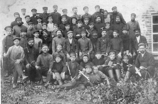 Рабочие механического цеха Языковской суконной фабрики. Начало XX века