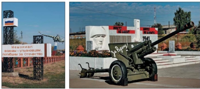Простившись с мистическим деревом и вернувшись на трассу, мы сразу же попадаем в интересный музей под открытым небом – сквер 60-летия Победы в Великой Отечественной войне 1941–1945 годов. Великая Отечественная война смерчем прошла по судьбам людей в нашей стране, забрав в качестве платы жизни десятков миллионов советских людей. Заплатила свой «налог кровью» и Ульяновская область, и каждый населённый пункт в ней.