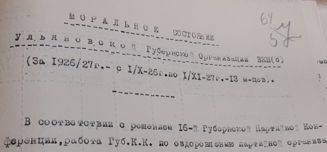 В 1927 году в докладе для губернской парторганизации о моральном состоянии ульяновских коммунистов рассказывалось о так называемом «Сызранском деле».