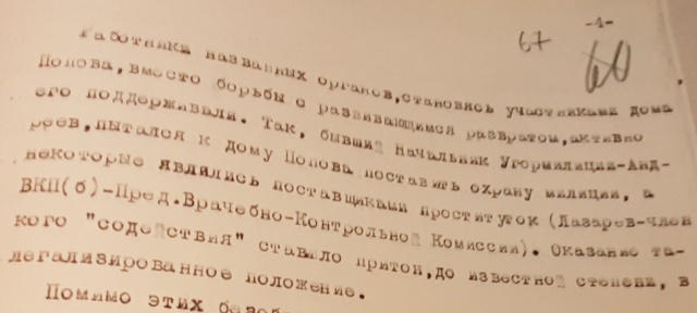 В числе основных посетителей этого притона являлись работники суда, следствия, милиции, угрозыска и часть ответственных работников хозяйственных предприятий и профорганизаций, большинство из которых – члены партии. В этом же доме сходились и принимали участие в совместной попойке с партийцами, торговцы и члены коллегии защитников».