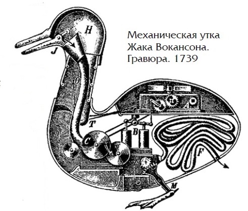 В 1741 году Вокансон предложил Лионской академии «создать автоматическую фигуру, движения которой будут воспроизводить все процессы в теле животного, как то: кровообращение, дыхание, пищеварение, движение мускулов, сухожилий, нервов и т. д.