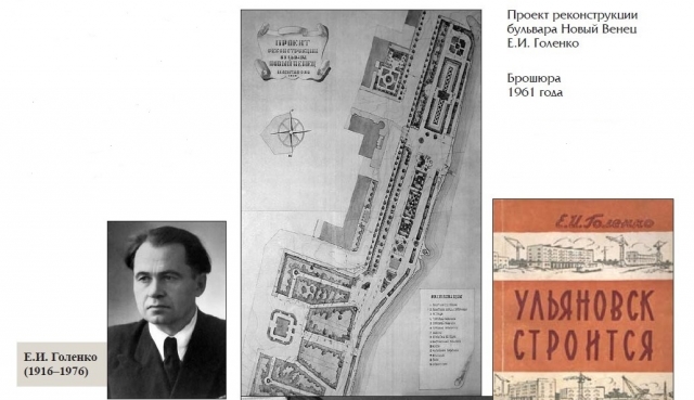 Только за один неполный год работы Е.И. Голенко на посту городского архитектора было сделано немало. Воплощены проекты благоустройства бульваров, скверов, садов и парков, реконструированы здания филармонии и речного вокзала, произведён учёт памятников архитектуры. Из семи объектов старого списка, утверждённого управлением по делам архитектуры при Совете Министров РСФСР, оставался лишь Дом-музей Ульяновых. Е.И. Голенко поднял вопрос об утверждении памятниками архитектуры ещё восемь объектов: здания Дворца книги, Гостиного двора, исторического музея имени И.А. Гончарова, кинотеатра «Художественный», здания горисполкома (Дома Шатрова), памятника Н.М. Карамзину, обелиска на Новом Венце, памятника Карлу Марксу.