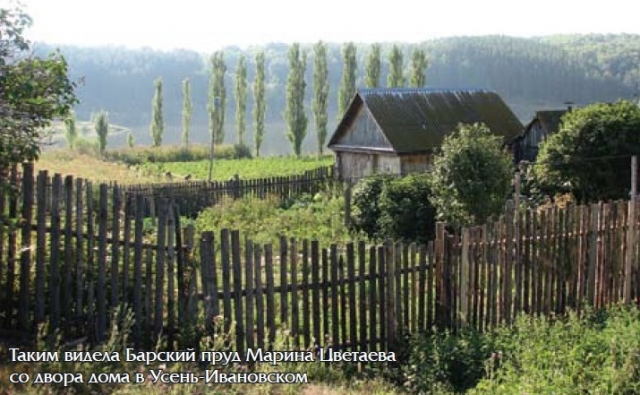 Окружающий ландшафт: небесный покров, любимые Цветаевой сосны, словно пронзающие небеса, голубое здание лесничества – удивительно созвучен облику Цветаевой. С высоты постамента вглядывается Марина в раскинувшееся перед ней село, словно пытаясь отыскать домик, в котором она и Сергей Эфрон начинали совместную жизнь в счастливое лето 1911 года. Здесь есть улица Марины Цветаевой. Мы шли по дороге, любуясь заводью реки, на берегу которой в ожидании клёва застыли в безмолвии рыбаки, повторяя путь, по которому ходили столетие назад молодые влюблённые – Марина и Сергей. С изумлением разглядывали своеобразный памятный знак, указывающий, что здесь стоял дом, в котором жила Марина Цветаева.