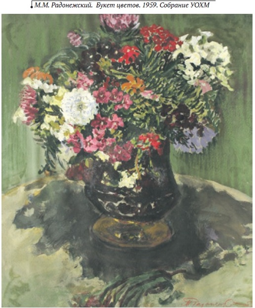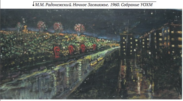 М.М. Радонежский вполне мог с такими сравнениями не согласиться, особенно в те годы, когда новаторские тенденции ХХ века были «не рекомендованы для изучения и популяризации». Но обретенные им мощные, своеобразные качества живописи, присущие только ему творческие возможности органично входят в художественную летопись, что становится смыслом настоящего искусства.